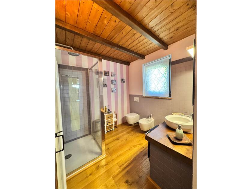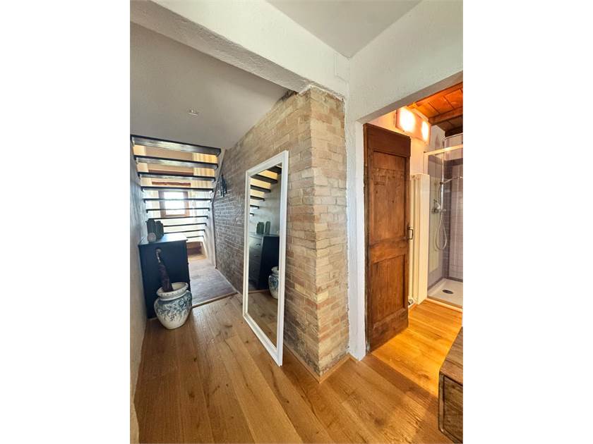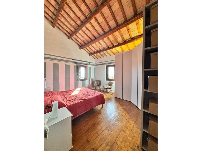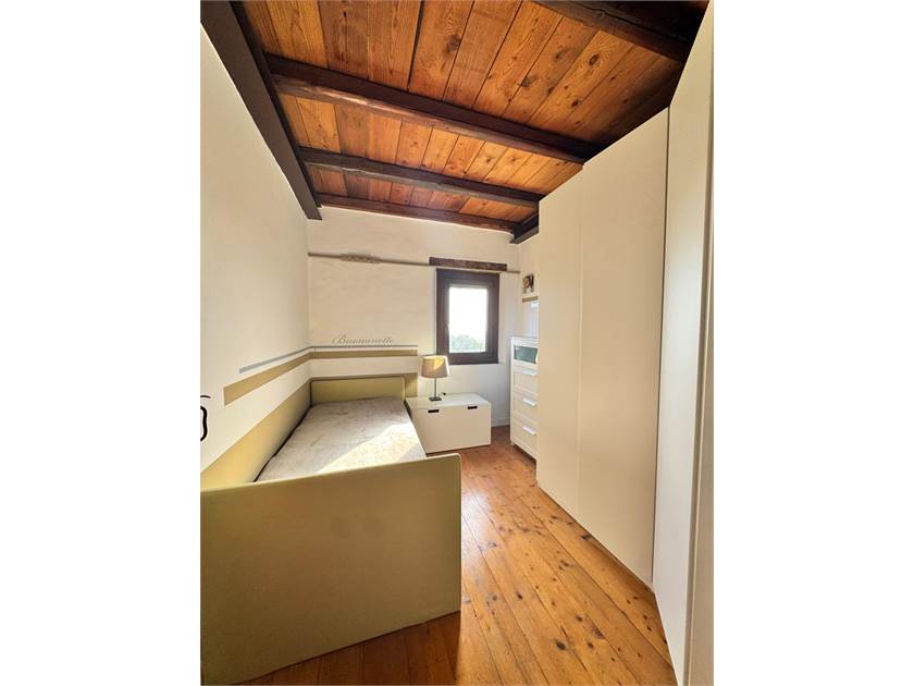 Al piano superiore si accede tramite una scala in legno e troviamo l'ampia zona notte dove i soffitti con travi a vista e le “ vecchie porte di campagna" attirano subito l'attenzione, troviamo le 3 camere di cui la matrimoniale diventa una suite con al suo interno la zona soppalco attrezzata con un salotto e la zona armadi, un ampio bagno con vasca e doccia e un ripostiglio lavanderia sono a servizio del reparto notte.