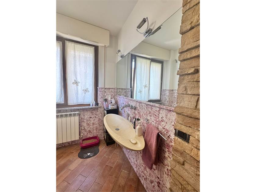 L’immobile si presenta in ottime condizioni, al piano terra troviamo un garage di ampie dimensioni dal quale arriviamo internamente all’appartamento al piano primo. Ingresso su ampio soggiorno, bagno e cucina abitabile, tre balconi completano la zona giorno, il reparto notte è formato da una camera matrimoniale con balcone che affaccia su Osimo, due camere singole, un ampio bagno e ripostiglio. L’immobile ha inoltre una soffitta ed è dotato di un giardino che gira su due lati.