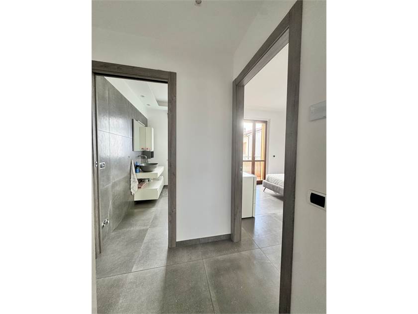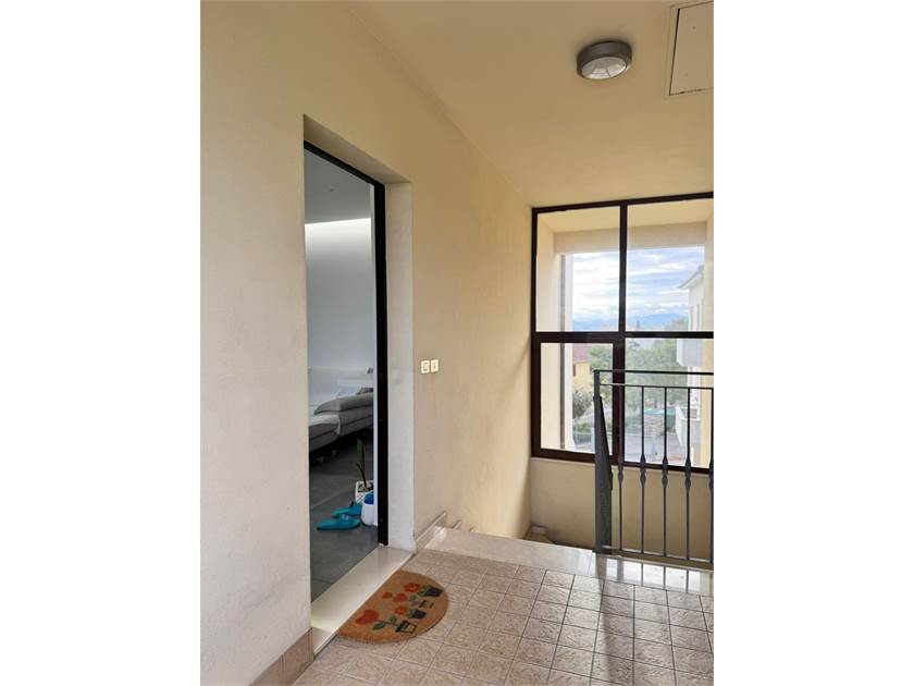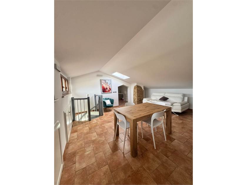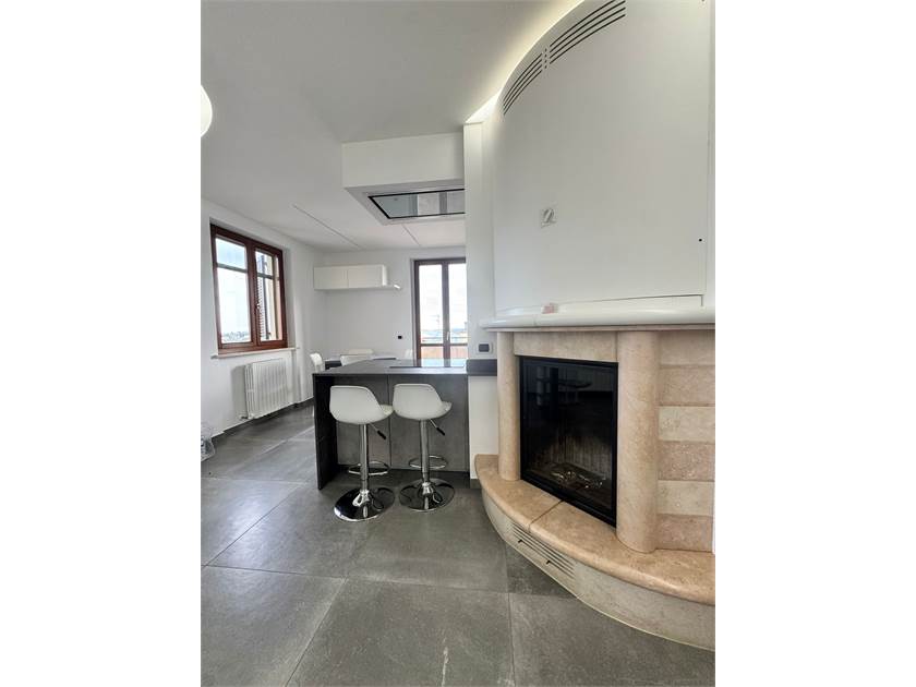 Ingresso su soggiorno con cucina a vista e un caminetto che arreda e rende l'atmosfera calda e accogliente. Dal soggiorno abbiamo l'accesso al terrazzo ampio e abitabile con una visuale aperta. La zona notte disponde di un ampia camera matrimoniale con balcincino, una seconda camera e due bagni, piu angolo lavanderia. Tramite una scala interna accediamo al piano superiore dove troviamo due stanze, una delle due con un ulteriore camino che valorizza l'ambiente .