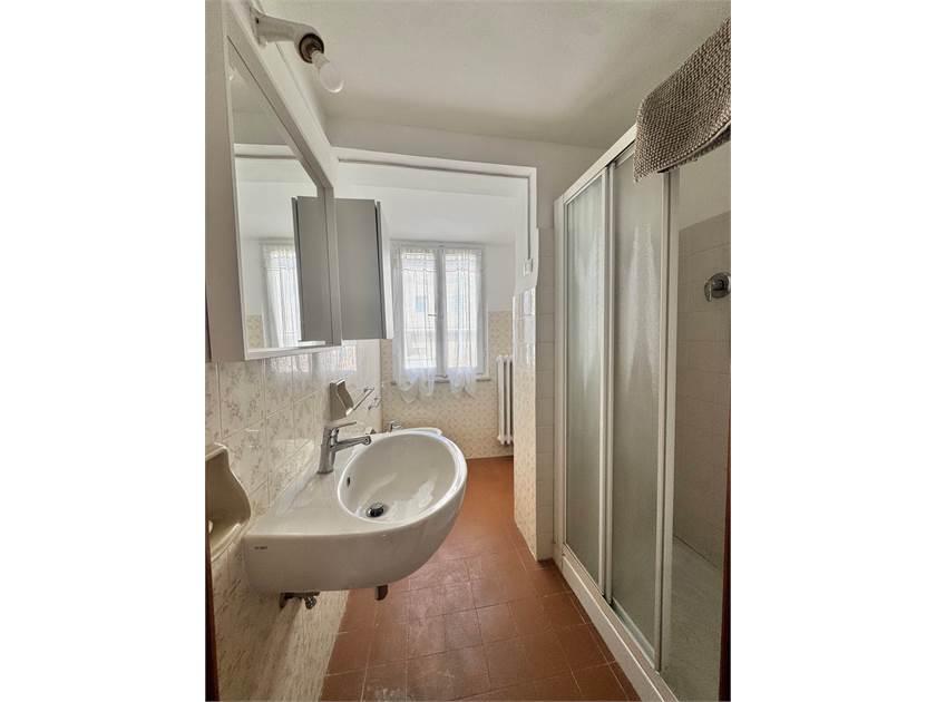 Siamo ad Osimo, in una zona del centro storico comoda e con un affaccio aperto e luminoso. Vendiamo una solzuione completamente indipendente di circa 100 mq. Ingresso su soggiorno con sala da pranzo e cucinino, dal quale accediamo allo sfogo esterno sul restro dell'immobile. Al piano primo troviamo un bagno finestrato, e due camere matrimoniali di cui una con affaccio e ripostiglio.